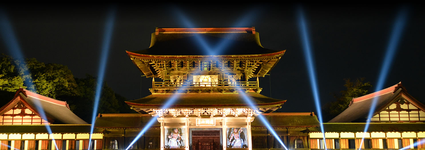 9月13日(土)・14日(日)・15日(月·祝)の3日間開催する【夜の祈りと大福市】では、ライトアップなどの光と幻想的な音楽で、大伽藍(がらん)をファンタジックに演出します。開催時間は各日午後6時〜9時。特別な夜間拝観期間中は様々な演出、展示でご来場者をおもてなしいたします。